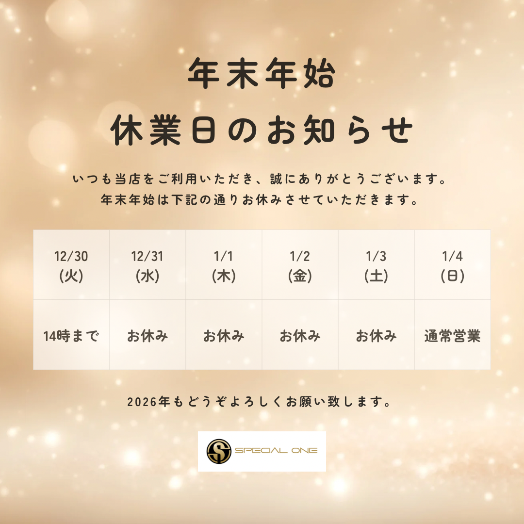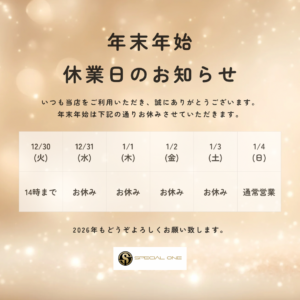 年内営業時間は12月30日(月)~14時(13時最終予約)